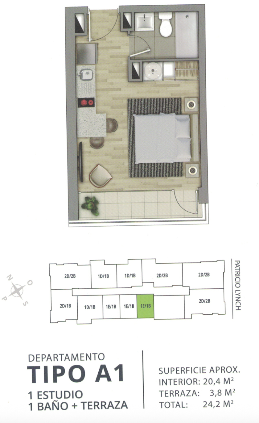 Venta departamento Estudio - Edificio Centro Lynch