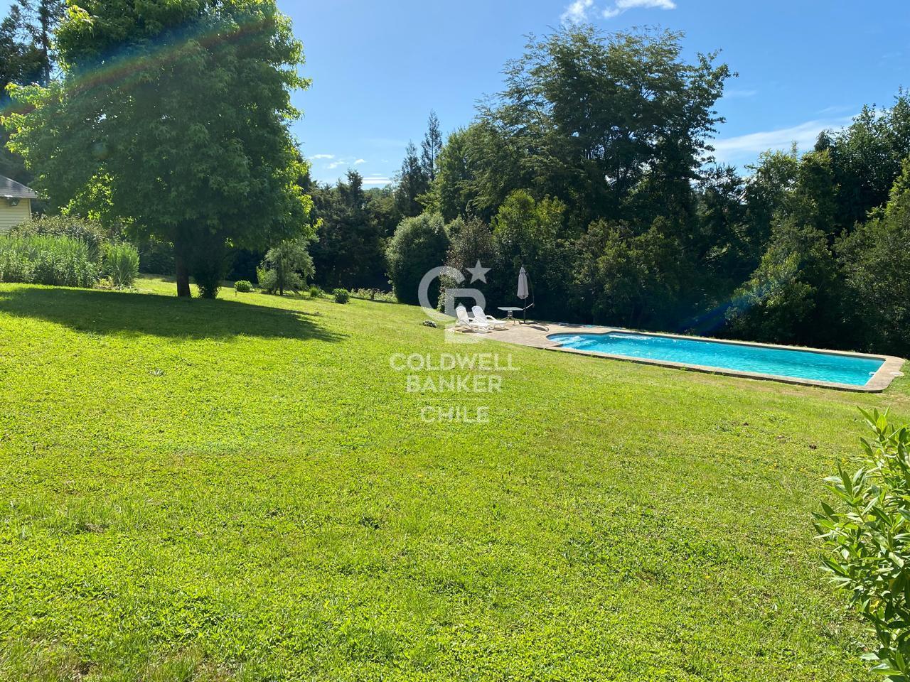 ['A solo 4 km de la ciudad de Osorno, se encuentra esta exclusiva casa de un nivel, ubicada en un entorno natural privilegiado dentro de un condominio privado con acceso controlado. Perfecta para quienes buscan tranquilidad, espacio y cercanía a los servicios de la ciudad.', 'Interior Funcional y Espacioso:', 'Acogedor living independiente con salida a la terraza.', 'Comedor principal separado.', 'Amplia sala de televisión conectada a un comedor de diario y cocina integrada.', 'Hall de distribución con elegante baño de visitas.', 'Zona de Dormitorios:', 'Sala de lectura que conecta el área de dormitorios.', 'Dormitorio principal muy amplio, con espacio para escritorio, walk-in closet, baño en suite con tina de hidromasaje y salida a terraza.', 'Cuatro dormitorios adicionales que comparten un baño completo y luminoso.', 'Área de Servicio:', 'Dormitorio con baño privado.', 'Ámplia logia para lavandería y planchado.', 'Espacios Adicionales:', 'Oficina o taller independiente, con baño propio y acceso exterior, ideal para trabajo remoto o uso profesional.', 'Exterior y Entorno:', 'Terreno de 10.000 m² completamente consolidado cuenta con hermoso jardín con árboles adultos, prado cuidado y sectores con flores ornamentales.', 'Piscina privada rodeada de áreas verdes y terrazas.', 'Espacios ideales para descanso, reuniones sociales y vida al aire libre.', 'Ubicada en la Ruta U-55, esta propiedad ofrece excelente conectividad y la tranquilidad del campo a solo minutos de Osorno.', 'ID 32856 - Coldwell Banker Los Lagos', '¡Aprovecha esta oportunidad, haz clic en contactar y agenda tu visita!', 'Descubre en nuestra web Coldwell Banker Chile más propiedades para ti.']
