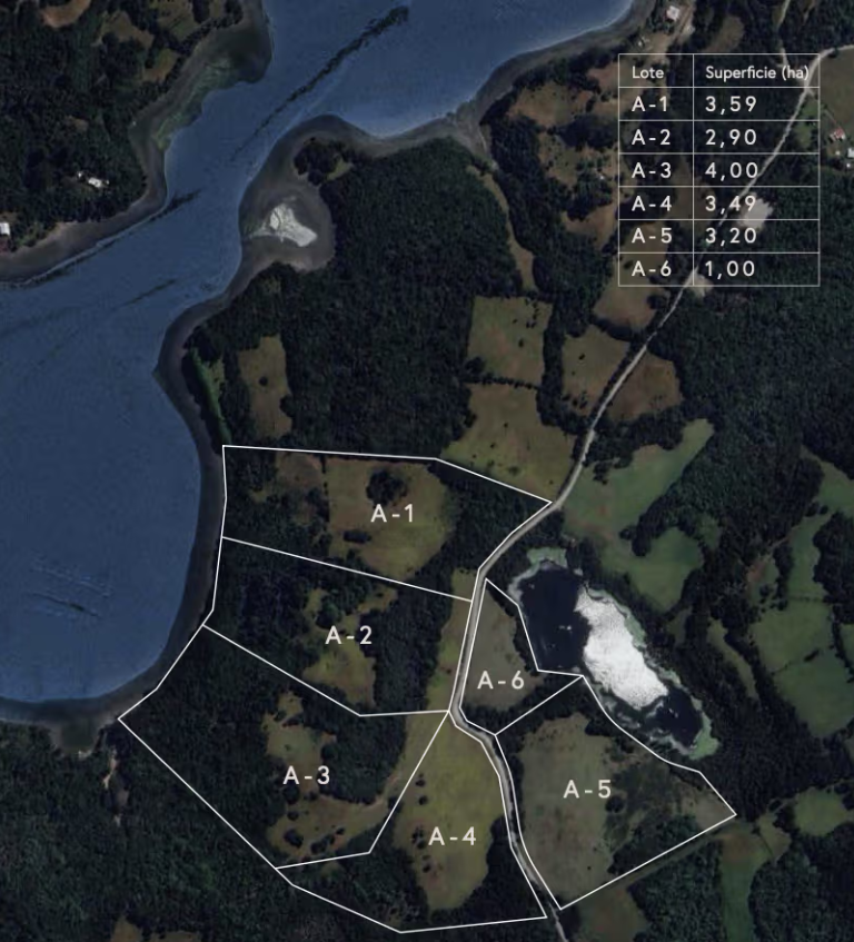 ['Puluqui nace de un concepto profundo e inspirador,', 'guiado por un impulso excepcional de cuidar la tierra, comprendiendo el valor de este lugar remoto en el mundo, un patrimonio humano y natural.', 'Este proyecto honra la autenticidad de las Islas Calbuco,', 'reflejando el respeto por la tierra y su historia un compromiso duradero con la preservación de la identidad de Puluqui, un espacio propio en medio de la naturaleza, y una invitación a convertirse en guardián de un legado.', 'A continuación, la transcripción ordenada y fiel del texto contenido en la imagen:', 'UBICADA EN CALBUCO, REGION DE LOS LAGOS', 'Forma parte del archipiélago conformado por las 16 Islas Calbuco.', 'Un rincón exclusivo en el corazón de estas maravillosas islas.', 'Esta joya del sur de Chile, perteneciente a la Región de Los Lagos,', 'te invita a descubrir la elegancia natural en cada rincón.', '11 EXCLUSIVOS LOTES', 'Priorizamos la exclusividad con 11 lotes independientes,', 'con factibilidad eléctrica y conexión al agua potable rural del sector,', 'con 2,8 hectáreas de superficie promedio acceso privado e independiente', 'para cada lote, 600 metros de playa, y una laguna interior,', 'definen el paisaje de este refugio único.', 'Lote Superficie (ha) UF', 'A-1 3,59 Reservado', 'A-2 2,90 4.300', 'A-3 4,00 5.000', 'A-4 3,49 3.900', 'A-5 3,20 4.300', 'A-6 1,00 2.300', 'B-1 2,73 4.000', 'B-2 2,56 4.800', 'B-3 2,98 4.400', 'B-4 3,43 Reservado', 'B-5 1,21 2.500', 'Condiciones de C', 'Comunícate con el corredor a través del número: +569 81758811']
